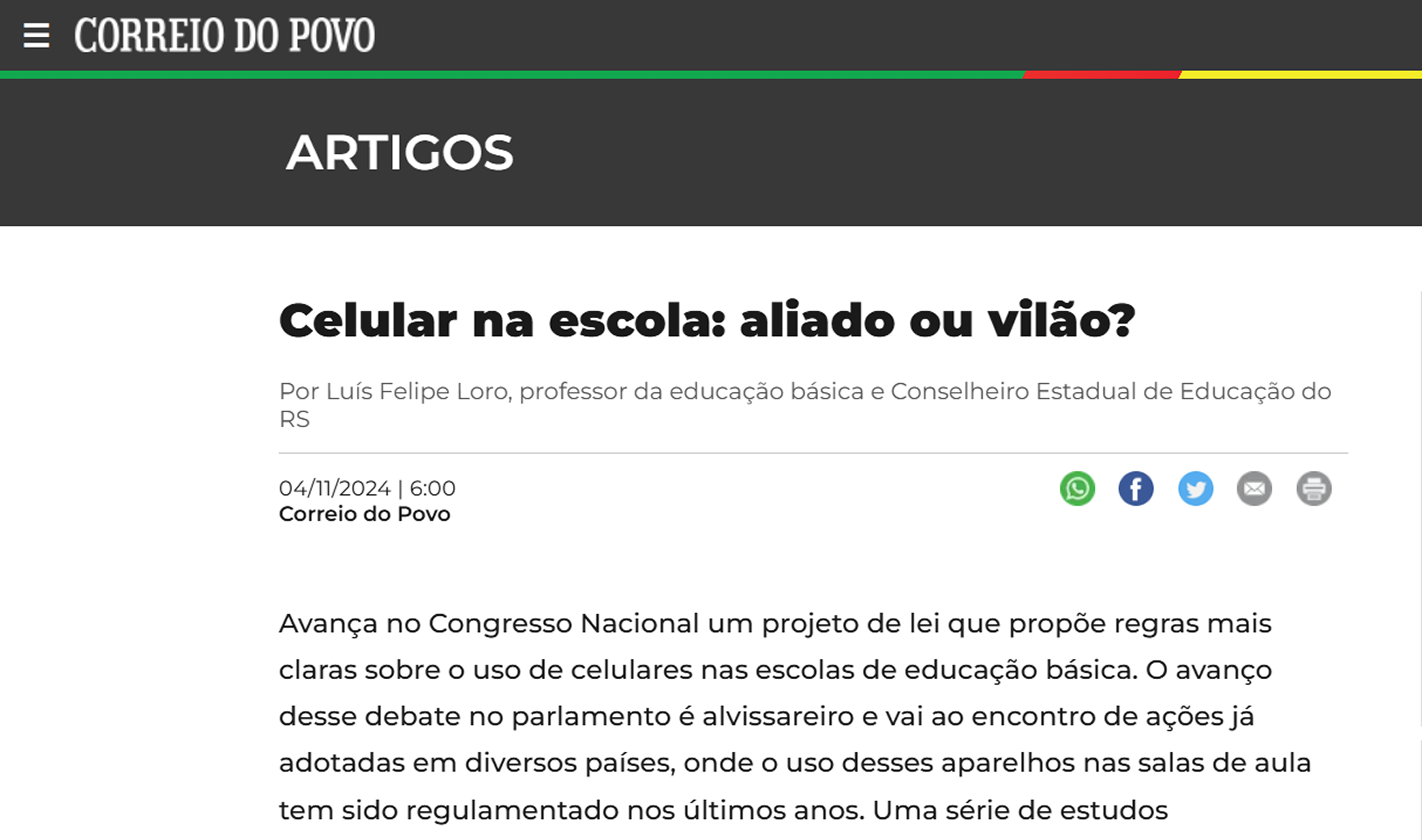 Luís Felipe Loro é professor, escritor, palestrante, consultor educacional e conselheiro estadual de educação do Rio Grande do Sul. Mestre em Educação, formado em Letras, e com diversas especializações na área educacional, construiu sua trajetória aliando teoria e prática, sempre com foco na inovação e na qualificação do ensino.
